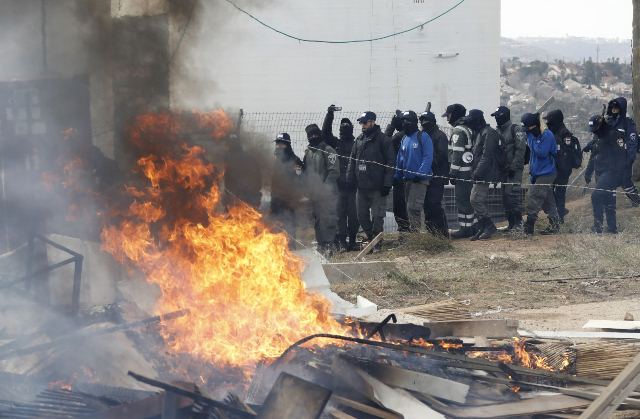 Cientos de policías estaban apostados, aparentemente desarmados, en lo alto de la colina en la que se encuentra la colonia de Amona, cerca de Ramala, para evacuar a los entre 200 y 300 residentes.