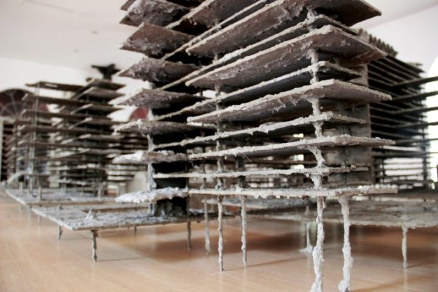 Esta escultura de grandes proporciones de Iosu Aramburu (Lima, 1986) replica una maqueta diseñada entre 1947 y 1949 durante el gobierno de Manuel Odría como parte de un proyecto fallido para la reestructuración urbana de la capital. Dicho proyecto –concebido por la Oficina Nacional de Planificación Urbana– proyectaba la transformación de doce manzanas del Centro de Lima ubicadas entre el Jirón de La Unión y la Avenida Tacna, y los jirones Huancavelica y Conde de Superunda. Finalmente esta iniciativa no se concretaría, como muchos de los proyectos de desarrollo planteados a mediados del siglo XX.