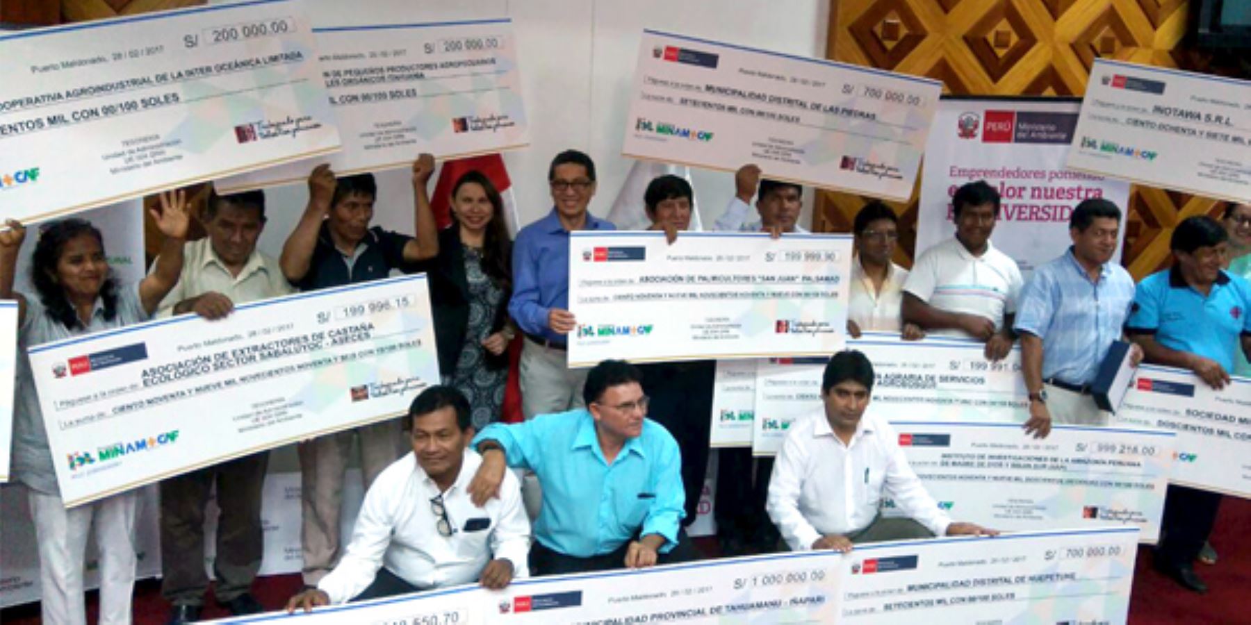 En una ceremonia presidida por el viceministro Fernando León, se entregó un millón 964,988.9 soles a diez unidades productivas que contribuirán con el uso rentable y sostenible de la diversidad biológica y el crecimiento verde a partir de experiencias locales ubicadas en Madre de Dios.