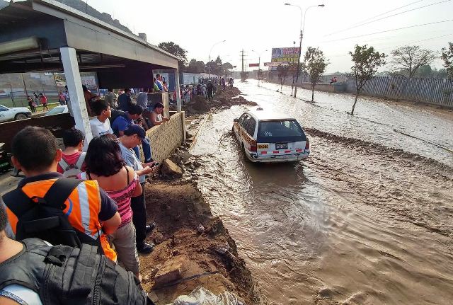 Lima, mar. 17. El río Huaycoloro volvió a desbordarse esta mañana y cubrió con sus aguas decenas de viviendas de la zona de Campoy, Zárate así como la avenida Nueve de Octubre y el Malecón Checa, en San Juan de Lurigancho, al este de Lima.