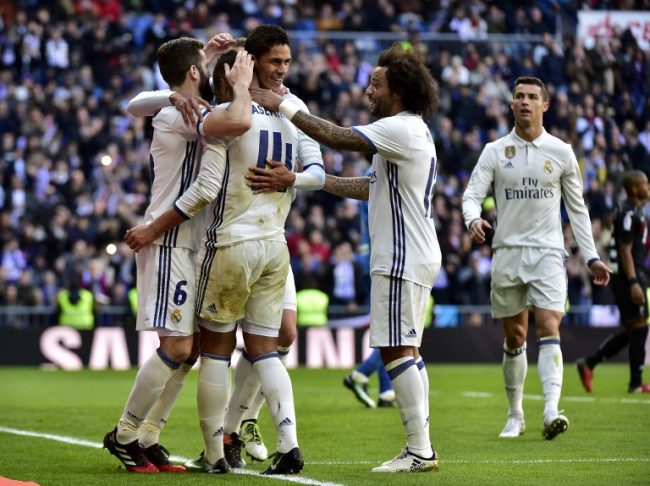 Real Madrid: Keylor Navas; Carvajal, Sergio Ramos, Nacho, Marcelo; Casemiro, Kroos, Modric; Bale, Cristiano Ronaldo y Benzema.