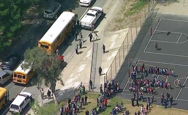 Estudiantes de la North Park Elementary School eran transportados a una escuela secundaria cercana «por seguridad», dijo Burguan.