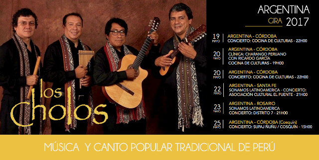 El grupo Los Cholos viajará el próximo mes de mayo a las ciudades de Córdoba, Rosario y Santa Fe – Argentina – para realizar una serie de conciertos, conversatorios y clínicas sobre el charango peruano; esto en el marco de una gira artística que realizará por el sur del continente para difundir la cultura de Perú y reafirmar su memoria, dentro de un contexto latinoamericano.