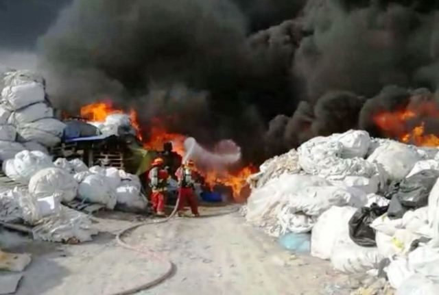Desde los lejos, puede apreciarse gran cantidad de humo negro que se alza hacia el cielo debido de la quema de los productos inflamables, lo cual sería tóxico para las personas.