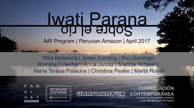 “IWATI PARANA” Sobre el Rio, hace referencia inmediata a la cultura kukama kukamiria la cual construye su estructura social y cultural sobre una misma actividad, la pesca, asentados en la Comunidad Nativa de Santo Tomas, a orillas del rio Mapacocha afluente del rio Nanay y clasificada como una zona inundable, este contexto fue evaluado por Correlación Contemporánea y optaron por instaurar un programa de residencia que trabaje estrechamente con estos conceptos sociales, culturales y geográficos, poniendo a los artistas participantes a producir, investigar y sobretodo vivir en un ambiente influenciado por su mitología como por sus costumbres ancestrales.