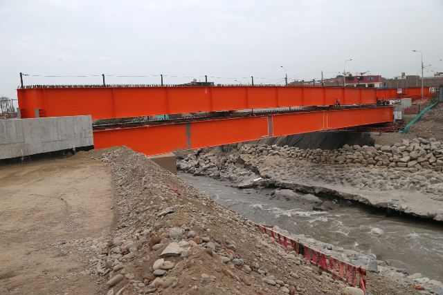 Detalló que los trabajos de dicha estructura, que pasa por encima del río Rímac, tienen en la actualidad un avance del 60%, y que para cumplir con los plazos se viene trabajando en doble turno.