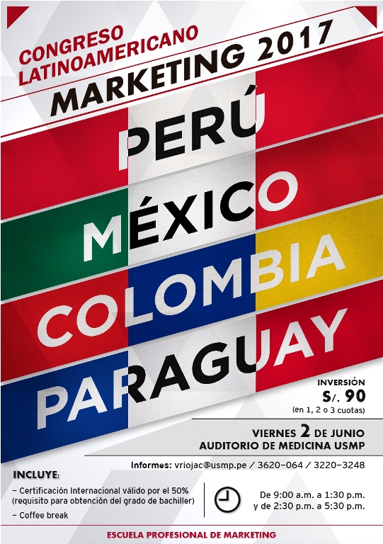 Este congreso, está dirigido a alumnos, profesores, ejecutivos y todo profesional interesado en Marketing. El evento se realizará el próximo 02 de junio en el Auditorio de la Facultad de Medicina de la USMP, Avenida Alameda del Corregidor 1531 Urb. Los Sirius III Etapa – La Molina.
