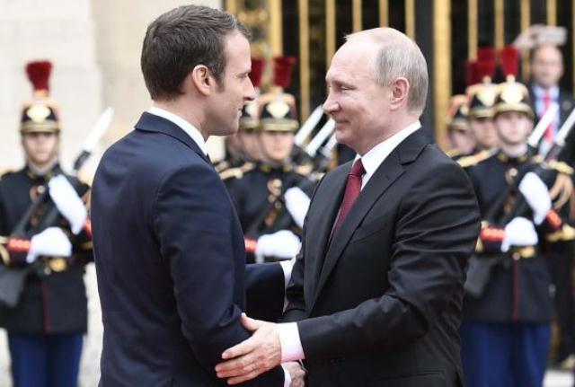 Macron y Putin se estrecharon las manos en el patio del Gran Trianón, palacio que integra el predio del castillo de Versalles, donde se había colocado una alfombra roja de ceremonial. Los dos mandatarios inaugurarán tras el encuentro una muestra para marcar los 300 años de la visita del zar Pedro el Grande a Francia en 1717.