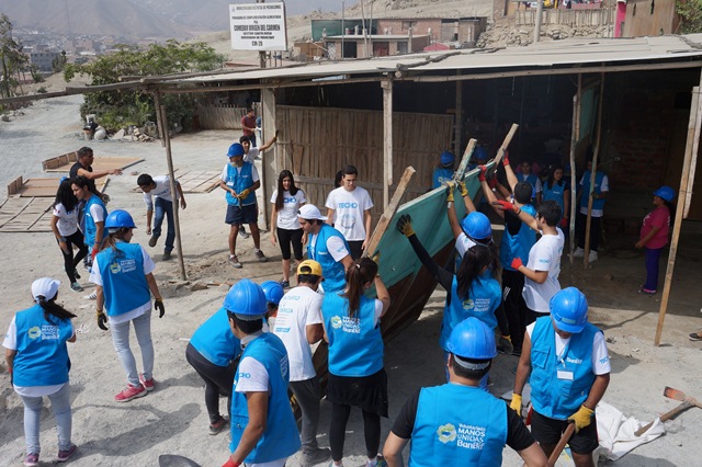 Lima, 29 de mayo de 2017.- Con la participación del voluntariado corporativo “Manos Unidas” de BanBif, se llevó a cabo la primera etapa de la implementación del proyecto “Alimentando el Futuro” en la comunidad de Santa Rosa en Manchay, que beneficiará a 130 familias. El proyecto consiste en la construcción de un local en el que funcionará un comedor comunitario y el programa de vaso de leche.