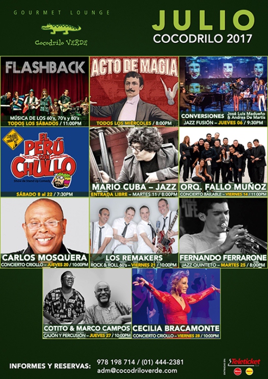 Cocodrilo Verde Gourmet Lounge invita a los miembros del Círculo de Amigos de Radio Filarmonía a disfrutar la «Experiencia Cocodrilo» con su Cartelera de Conciertos del 20 al 27 de Julio con un 50% de Descuento presentando su Carnet Vigente en boletería.