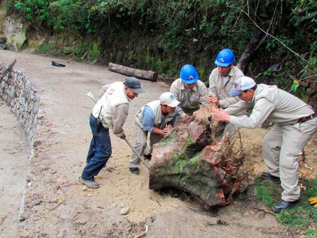 El trabajo de rehabilitación estuvo a cargo del personal de conservación y mantenimiento de la Red de Caminos Inca del Parque Arqueológico Nacional de Machu Picchu.