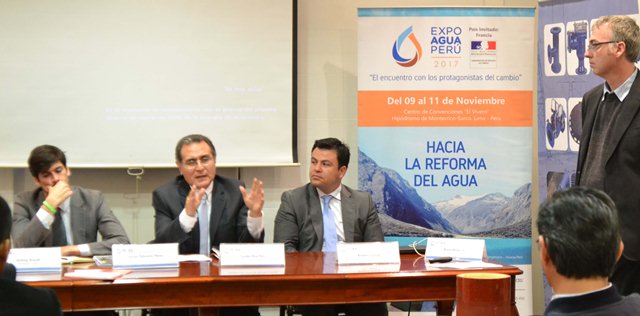 Entre los expositores estuvieron el organizador de Expo Agua Perú y Director General del Centro de Competencias del Agua – CCA, Bram Willems Ph.D; el Presidente del Comité del Agua de la Sociedad Nacional de Minería, Petróleo y Energía – SNMPE, Guido Bocchio; el Gerente Comercial de Saint Gobain, Sr. Andrés Galvis; Director de Ingeniería y O&M Suez Water Advanced Solutions Latam, Ing. Javier Palmero Pérez y el Oficial de Inversiones de PROPARCO- Agencia Francesa de Desarrollo AFD, Sr. Jeremy Brault.