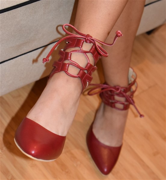 Fiorella Franchini Gerente de Solelá Shoes hace entrega de calzado a Andrea Sejuro Señorita. Lince 2017
