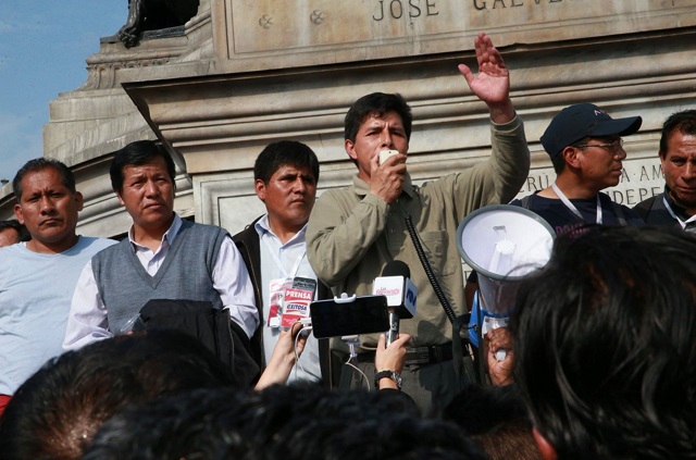 Desde la plaza Dos de Mayo, donde se realizó una conferencia de prensa improvisada, Pedro Castillo invocó a los maestros regresar a sus respectivas provincias y reunirse con las autoridades regionales para trabajar juntos por la educación. El dirigente hizo el anuncio provisto de un megáfono y frente a cientos de profesores, en medio de fuertes medidas de seguridad policial en esa céntrica plaza limeña. Con carteles en mano, los profesores habían manifestado su disposición de respetar la decisión que les comunique Pedro Castillo en torno a la huelga que llevaba cuatro semanas.