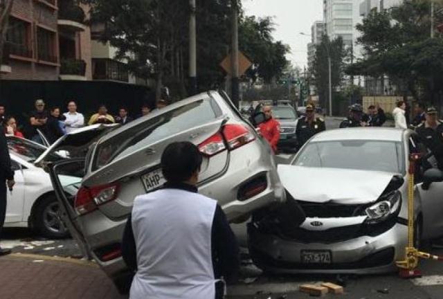 Un triple choque se registró en el cruce de las calles Jorge Basadre y Los Laureles, en San Isidro. Un reporte preliminar de la policía detalló que fueron cinco las personas que resultaron heridas a consecuencia del accidente.