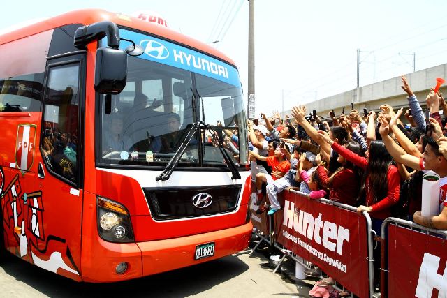 El bus que trasladaba a la selección por las calles de Lima fueron atiborradas de muestras de cariños de la población, quienes usaron diversos inplementos para brindarles su apoyo a los 28 jugadores que integran la selección nacional.