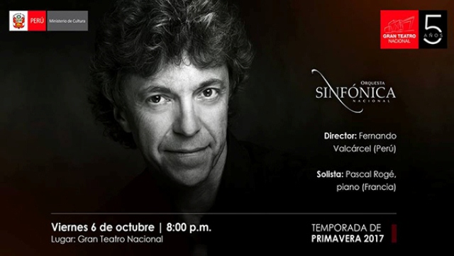 En el marco de su Temporada de Primavera 2017, la Orquesta Sinfónica Nacional del Perú colaborará por primera vez con Pascal Rogé, uno de los pianistas franceses más importantes y refinados de la actualidad.