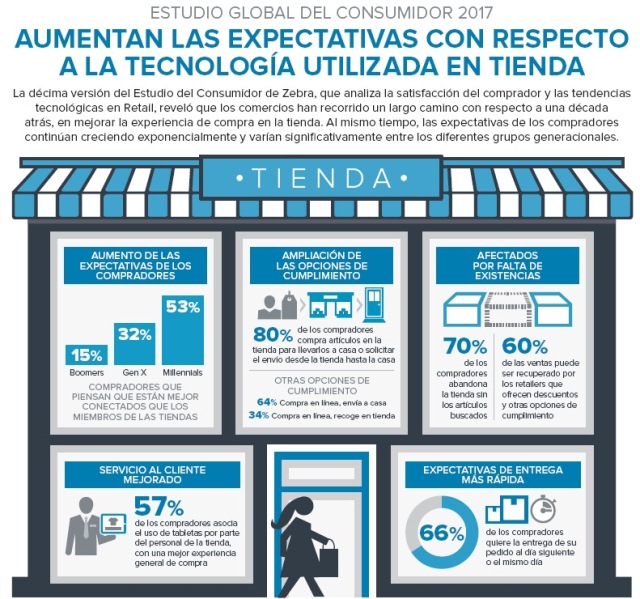 “Los resultados del Estudio del Consumidor 2017 indican que los compradores de todo el mundo creen que el comercio minorista ha recorrido un largo camino durante la última década para mejorar la experiencia de compra en la tienda, pero sus expectativas siguen aumentando exponencialmente. Los minoristas siguen invirtiendo en sus comercios físicos; vemos esto como una tendencia general en las tiendas de conveniencia y mercados masivos. El personal de ventas, dotado con las adecuadas herramientas tecnológicas está mejor equipado para atender a sus clientes e incrementar los ingresos, proporcionando visibilidad e información práctica sobre los productos, el inventario y las distintas posibilidades de cumplimiento, que traen la experiencia online a la tienda física”.