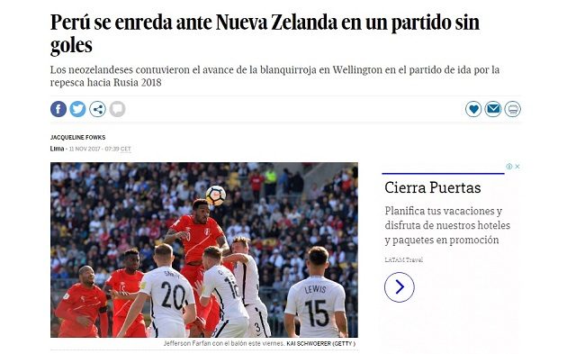 Perú empató 0-0 con Nueva Zelanda en Wellington y el pase al Mundial de Rusia 2018 se definirá en Lima.
