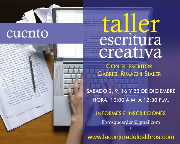 El escritor y periodista Gabriel Rimachi Sialer dictará el último Taller de Narrativa del año. Una oportunidad para leer y escribir intensamente con lecturas guiadas y mucha práctica en cada clase. Repasaremos una selección de cuentistas que nos mostrarán cómo ha evolucionado el cuento las últimas décadas. Lectura y escritura intensa para empezar a contar nuestras propias historias. 10 vacantes.