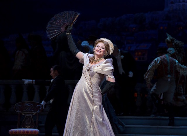 Glawari: Susan Graham; Valencienne: Andriana Chuchman; Danilo: Paul Groves; Camille de Rosillon: Taylor Stayton; Barón Mirko Zeta: Sir Thomas Allen