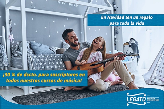 Recibe un 30% de descuento en todos los Cursos de Música LEGATO a domicilio, exclusivo para los miembros del Círculo de Amigos de Filarmonía con Carnet Vigente hasta el 30 de Diciembre.