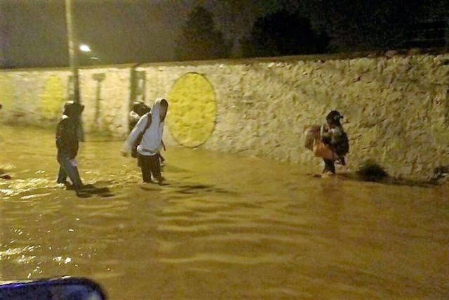 Los transeúntes pasaron un verdadero drama para cruzar las calles, en el que las aguas llegaron a una altura de 50 centímetros, y no tuvieron otra alternativa caminar por medio de las turbias aguas.