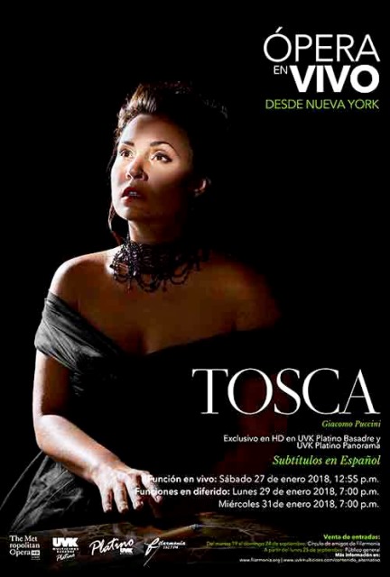 Transmisión en vivo el sábado 27 de Enero, 13:00pm Ópera Tosca HDen simultáneo con UVK Multicines Platino Basadre y Platino Panorama.