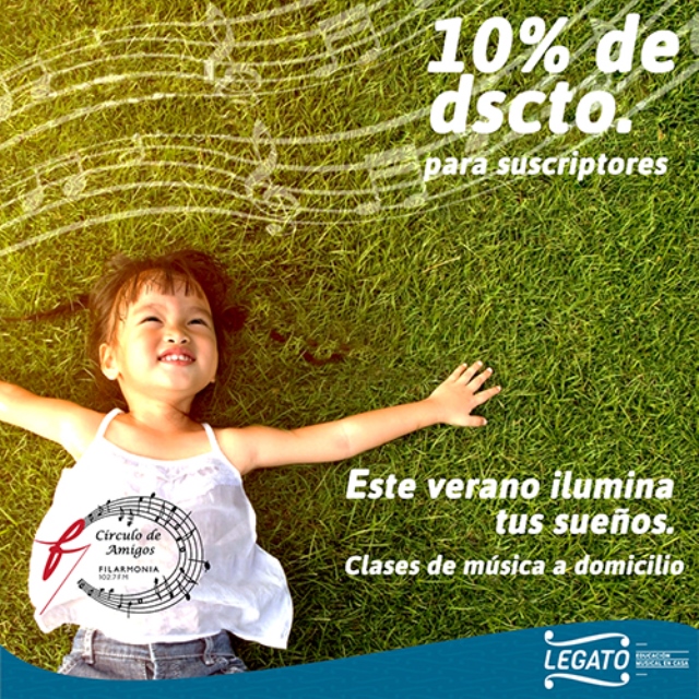 Este verano haz brillar tus sueños, si eres parte del Círculo de amigos de Radio Filarmonía recibe 10% de Descuento en todos nuestros cursos de música a domicilio hasta el 31 de marzo.