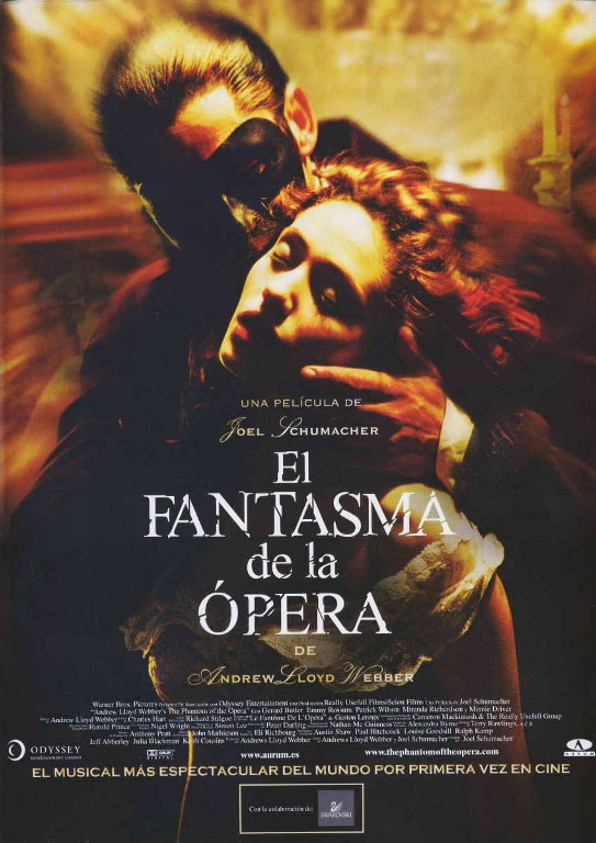 Sinopsis: En 1870, la Ópera de París prepara el estreno de un fastuoso espectáculo, pero entre bastidores se oculta un Fantasma (Gerald Butler). Nadie sabe quién es, pero sus apariciones son cada vez más frecuentes y siembran el pánico entre el público. Sólo Christine (Emmy Rossum), una joven bailarina, puede acercarse a él: el Fantasma es su maestro de canto. Lo que Christine ignora es que el Fantasma está profundamente enamorado de ella y no permitirá que nadie se interponga en su camino.