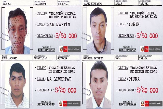 Lista de los buscados por violación de menores de edad