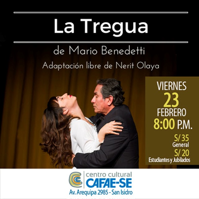 Invitamos a todos los miembros del Círculo de Amigos de Radio Filarmonía a participar del SORTEO de entradas dobles para la obra teatral La Tregua de Mario Benedetti en el Centro Cultural CAFAE-SE (Av. Arequipa 2985, San Isidro), el viernes 23 de febrero a las 8pm