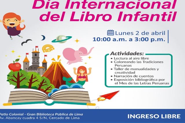 Con ocasión de celebrarse hoy lunes 2 de Abril el Día Internacional del Libro Infantil, la Sala Infantil “Amalia Aubry de Eidson” de la Gran Biblioteca Pública de Lima desarrollará un interesante programa de actividades culturales.