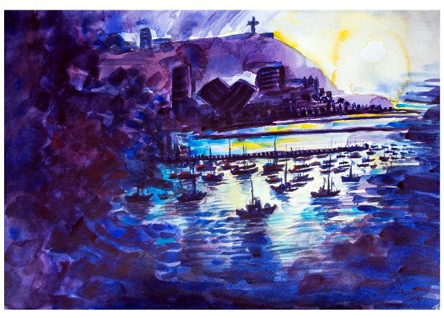 Francisco Manuel Pantigoso nos invita a redescubrir a través de sus acuarelas los espacios de Chorrillos que ante el ojo del artista aparecen inéditos. Nos muestra por medio del color lugares inmersos en brumas que en algunos casos se convierten en figuras abstractas, flameantes y plenas de movimiento.