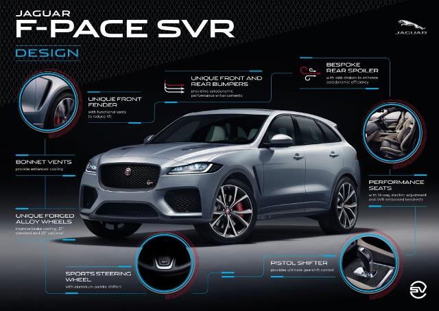 El Jaguar F-PACE, ganador del World Car of the Year and World Car Design of the Year 2017, obtiene el tratamiento SVR para hacerlo el F-PACE más rápido y más potente, con un chasis y aerodinámica mejorados para obtener la máxima recompensa del conductor en todas las condiciones.