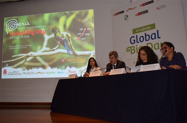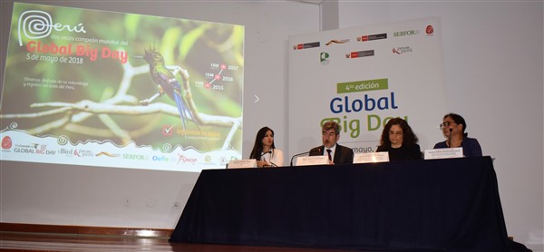 El Perú se consolidará como destino de naturaleza y buscará retomar su liderazgo en la cuarta edición del Global Big Day (GBD), competencia internacional de avistamiento de aves que se realizará este sábado 5 de mayo, informó la comisión organizadora conformada por el Centro de Ornitología y Biodiversidad (Corbidi), el Servicio Nacional Forestal y de Fauna Silvestre (SERFOR) del Ministerio de Agricultura y Riego, el Servicio Nacional de Áreas Naturales Protegidas por el Estado (SERNANP) del Ministerio del Ambiente, la Comisión de Promoción del Perú para la Exportación y el Turismo (PROMPERÚ) del Ministerio de Comercio Exterior y Turismo y la Fundación Peruana para la Conservación de la Naturaleza (Pro Naturaleza).