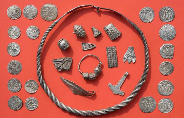 Por fin, este fin de semana pasado excavaron el botín y desenterraron centenares de piezas de la época del rey Harald, el vikingo que se convirtió al cristianismo y lo introdujo en Dinamarca, cuyo imperio fundó. Los arqueólogos tienen la certeza de que se trata de un tesoro de Harald bluetooth diente azul por las inscripciones de las monedas y porque la fecha coincide con la huida del rey a Mecklemburgo-Pomerania, tras perder una batalla contra su hijo. Se cree que el rey vikingo enterró este y otros tesoros en su huida. Ya en 1873, en la cercana isla de Hiddensee, también en el Báltico fue descubierto un gran lote de objetos de oro, pertenecientes también a la familia Harald.