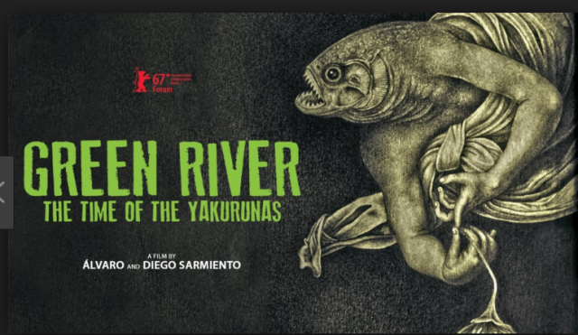 Guiados por cantos de ayahuasca, Río Verde. El tiempo de los Yakurunas (2017) es un viaje poético a las profundidades de la selva. La película explora la percepción del tiempo en tres comunidades unidas por las aguas del río Amazonas, sumergiendo al espectador en un paisaje habitado por chamanes y sociedades arquetípicas. Directores: Álvaro y Diego Sarmiento.
