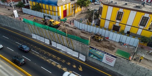 Con la demolición de los muros donde se prepara la construcción de los estribos que sostendrán dos nuevos Puentes Peatonales y Vehiculares sobre la Vía Expresa de la Av. Paseo de la República, la Municipalidad de Lima presentó los avances registrados en la obra que interconectará en menos tiempo los distritos de Surquillo y Miraflores.