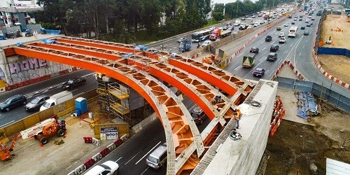 El Proyecto Vial «El Derby» avanza sin interrupciones, en esta ocasión se culminó con la colocación de seis pesadas vigas sobre las que correrá una pista que unirá los estribos oeste y este del importante Intercambio Vial, y que beneficiará a 676 mil vecinos de Lima, conectando los distritos de San Borja, Santiago de Surco y La Molina.