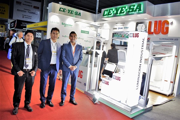 Entrevista a Jesús Morán Gallardo Sales Manager de LUG, Expertos en Iluminación Led Profesional de Polonia en la EXPOARCON 2018. presenta sus productos en el Stand CE-YE -SA, en la foto con Brayan Choque, Jefe de Producto y Lionel Luján, especialista en Iluminación CEYESA