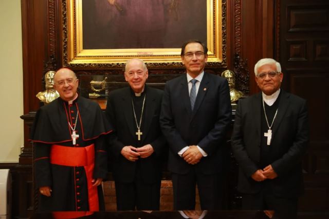 El Presidente Martín Vizcarra se reunió esta noche con altas autoridades de la Iglesia Católica, quienes expresaron el respaldo y disposición de la institución eclesiástica en la lucha contra la corrupción en el país.