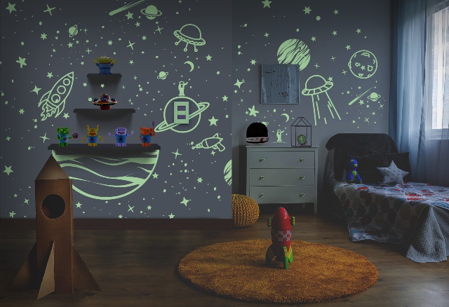 Lima, agosto 2018.- Si tus hijos aman explorar el universo, nada mejor que una habitación temática. Rust-Oleum, marca líder de pinturas para pequeños proyectos, te invita a decorar objetos y paredes con Rust-Oleum Glow in the Dark. ¡Dales a tus niños estrellas y planetas que brillen en la oscuridad!