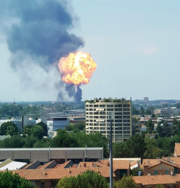 Las primeras versiones señalaban que se trataría de una explosión producida por el choque de un camión que contenía material tóxico en la zona Borgo Panigale, cercana al aeropuerto.