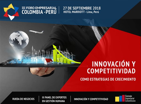 El III Foro Empresarial Colombia – Perú se llevará a cabo el próximo jueves 27 de setiembre 2018 de 8:00 am a 6:00 pm en el Hotel Marriot de Miraflores.