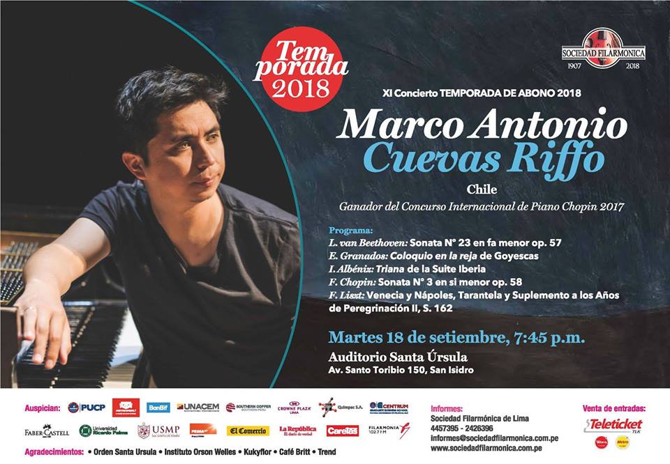 Martes 18: X Concierto Temporada de Abono. Auditorio Santa Ursula. Marco Antonio Cuevas Riffo, piano CHILE. Ganador del IV Concurso Internacional de Piano Federico Chopin 2017.