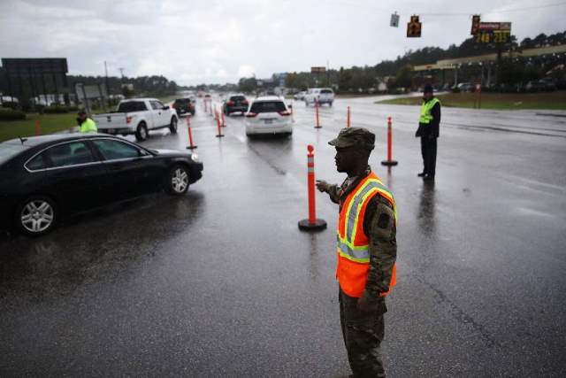 Los carriles de varias autopistas principales fueron cerrados para permitir un tráfico fluido tierra adentro, en virtud de que 1.7 millones de personas en las Carolinas y Virginia recibieron órdenes de evacuación voluntarias u obligatorias, según la Agencia Federal para el Manejo de Emergencias (FEMA).