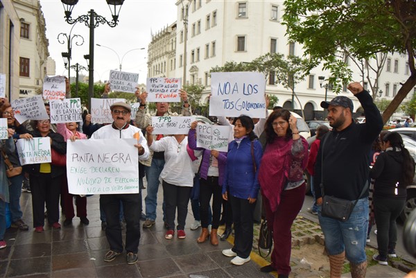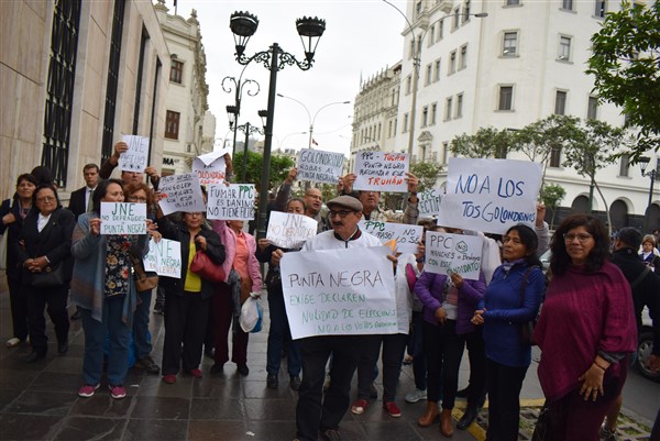 Pobladores de Punta Negra reclaman nuevas elecciones, ante la puerta de Jurado Nacional de Elecciones.