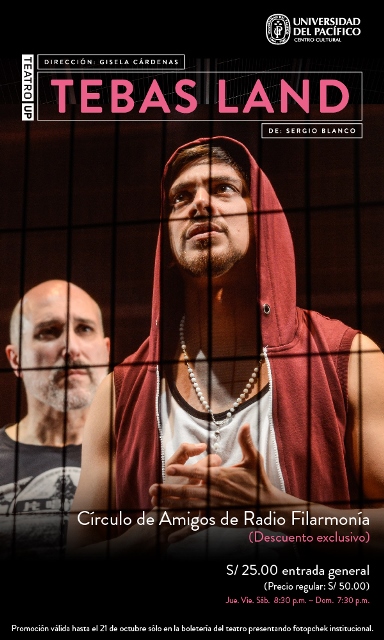 Precio Especial S/.25 para los miembros del Círculo de Amigos de Radio Filarmonía de jueves a sábado a las 8:30 pm y los domingos a las 7:30 pm hasta el 21 de octubre presentando su carnet vigente en la boletería del Teatro de la Universidad del Pacífico.