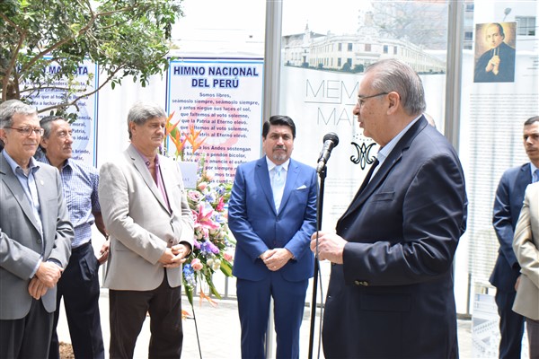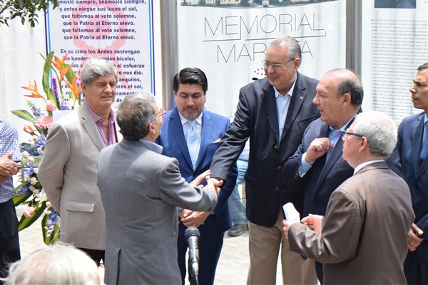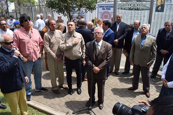 Se realizó la ceremonia con la presencia del Embajador Alan Wagner Tizón, Presidente del Consejo Mayor de Fundadores, el Ing. Diego La Rosa Jaimes Pdte. de la Federación Maristas del Perú, Hermano Marista Pablo González Franco, representante de la Congregación Maristas del Perú, Lic. Oscar Torres Silva Presidente de la Asociación Antigua Alumnos del Maristas San Isidro; luego la Bendición del MEMORIAL MARISTA por el Padre Francisco Javier Salazar Orive, Párroco de la Iglesia Virgen del Pilar cerrando con la Opera y Himno Marista interpretado por Carlos Llosa.